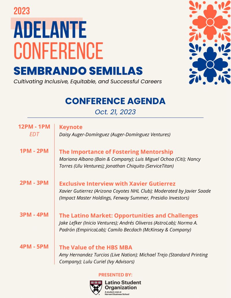 - Adelante, organizador por la Latino Student Organization de la escuela de negocios de Harvard